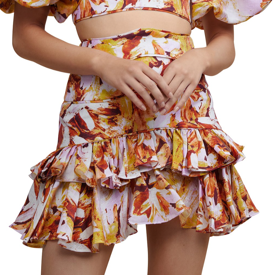 The Withington Skirt by Acler is crafted in a charming Lilac Brush hue. This mini skirt features a high waist and asymmetrical waistline, complemented by ruffled, tiered detailing at the hem. Fully lined for comfort and finished with an invisible back zip. Made from 90% Viscose Rayon and 10% Polyester. Dry clean recommended.