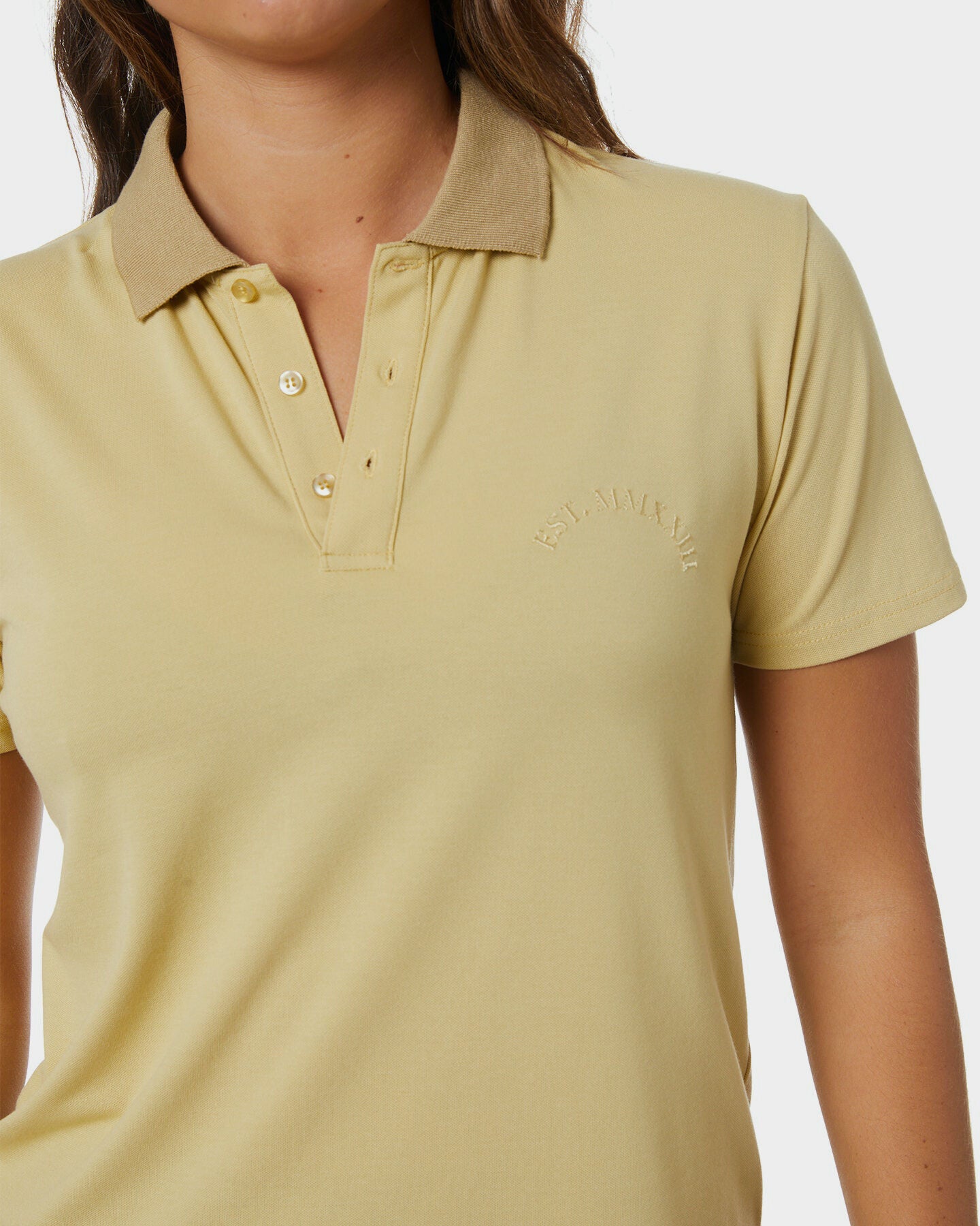 First Base Tennis Polo in Dune – a classic women’s sports shirt crafted from 100% cotton for breathable, all‑day comfort. Designed in Australia with a relaxed, true‑to‑size fit.