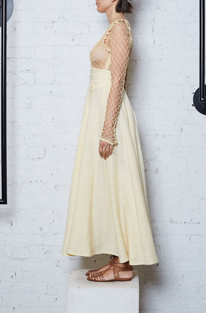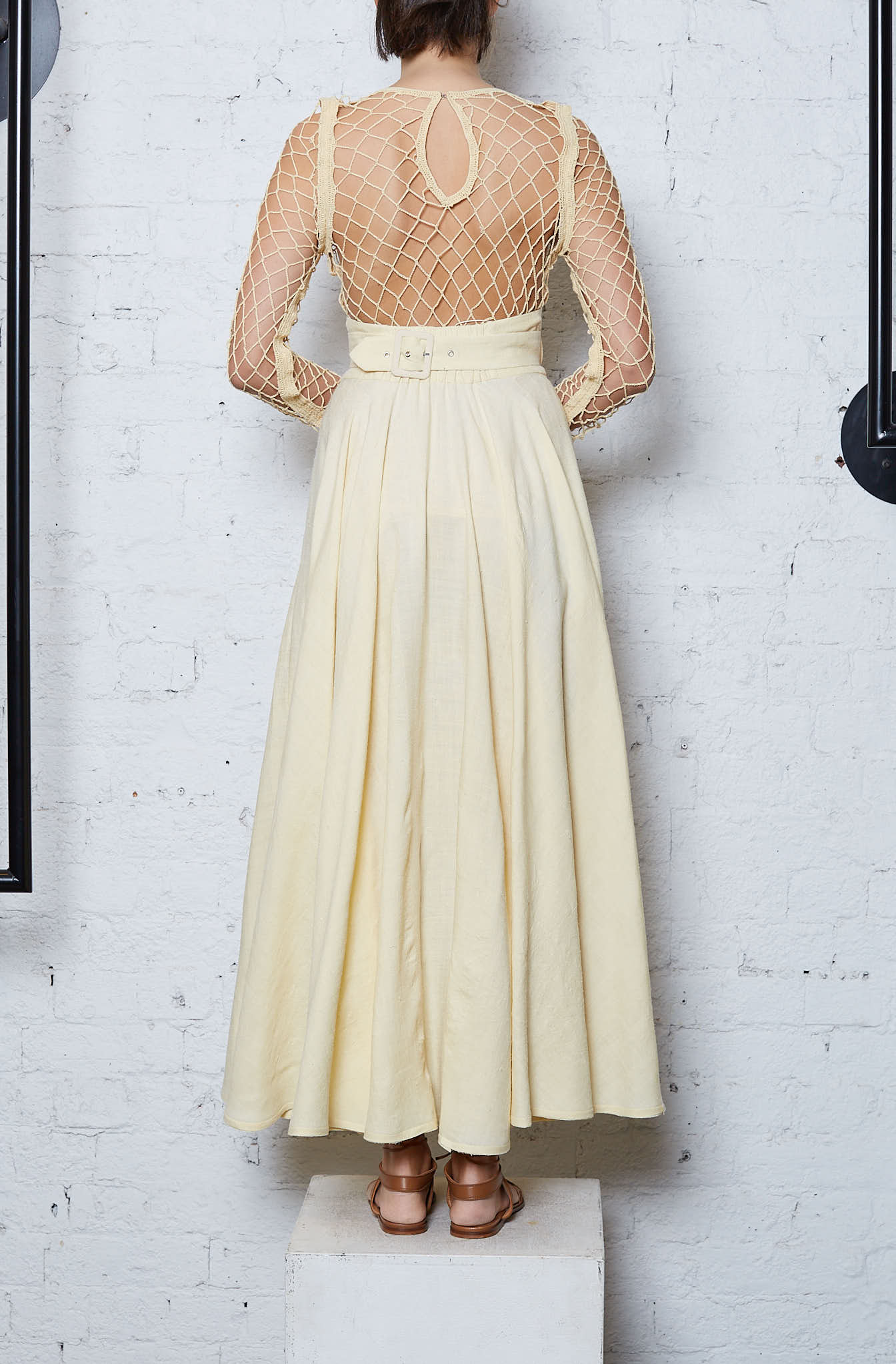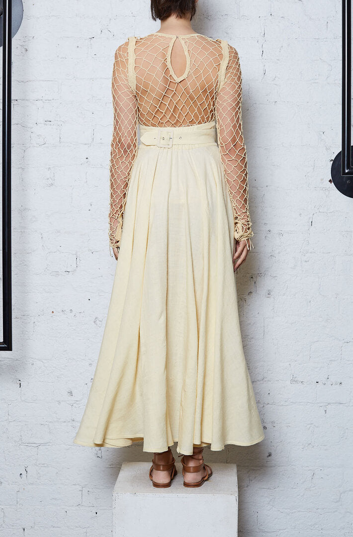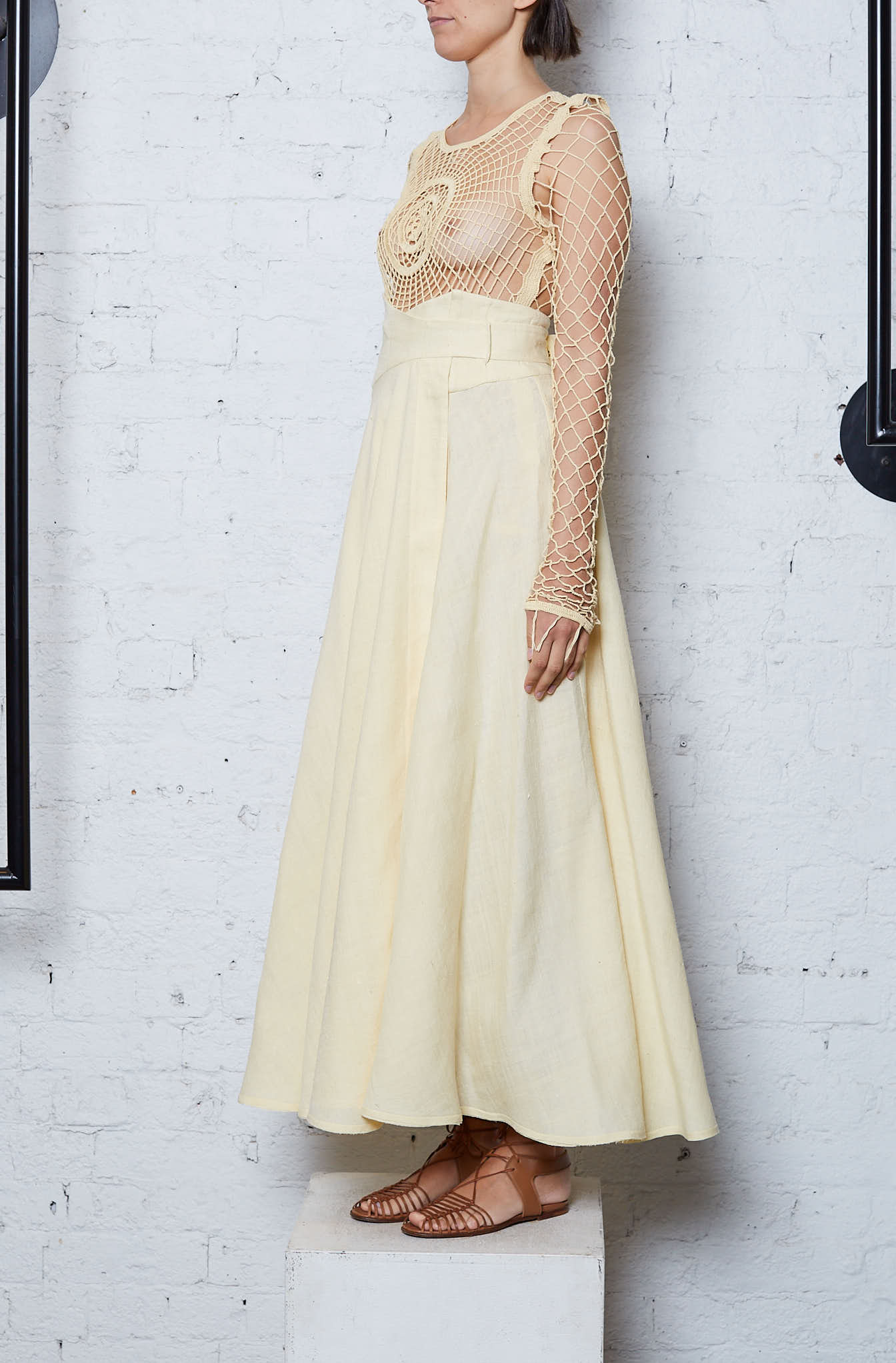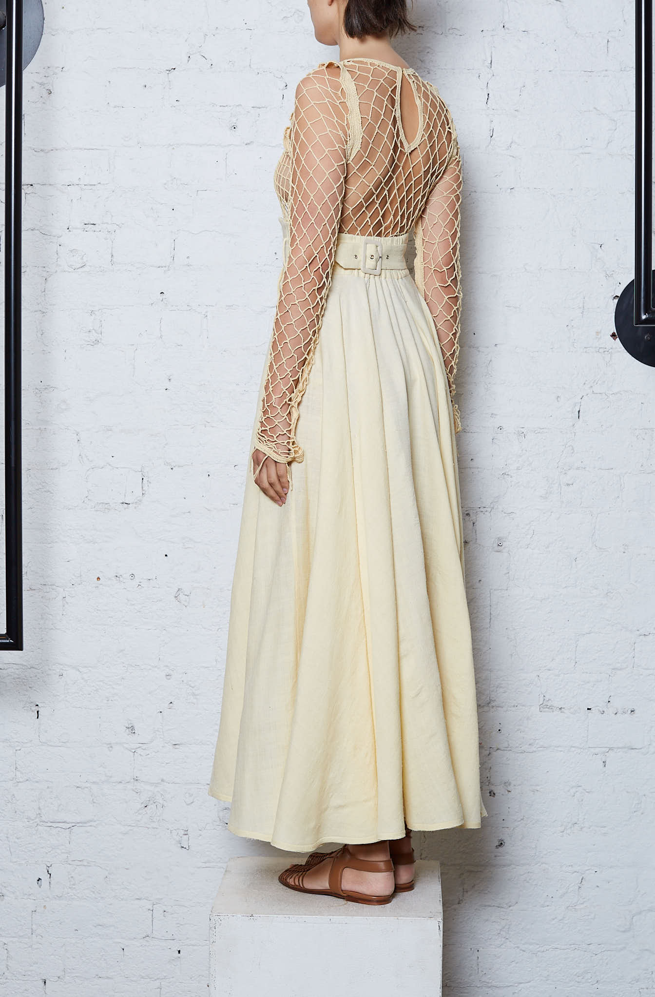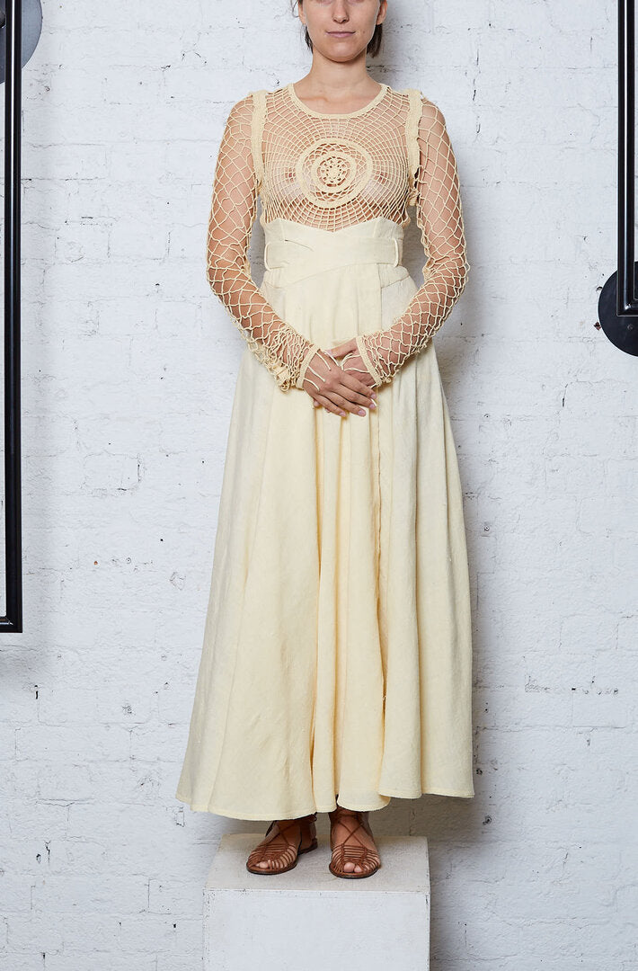 The Mycelium Top features a spiderweb like centre radiating out over the body with tasseled long sleeves. Completely exposed, this piece has no lining. Crochet crafted from 100% cotton.