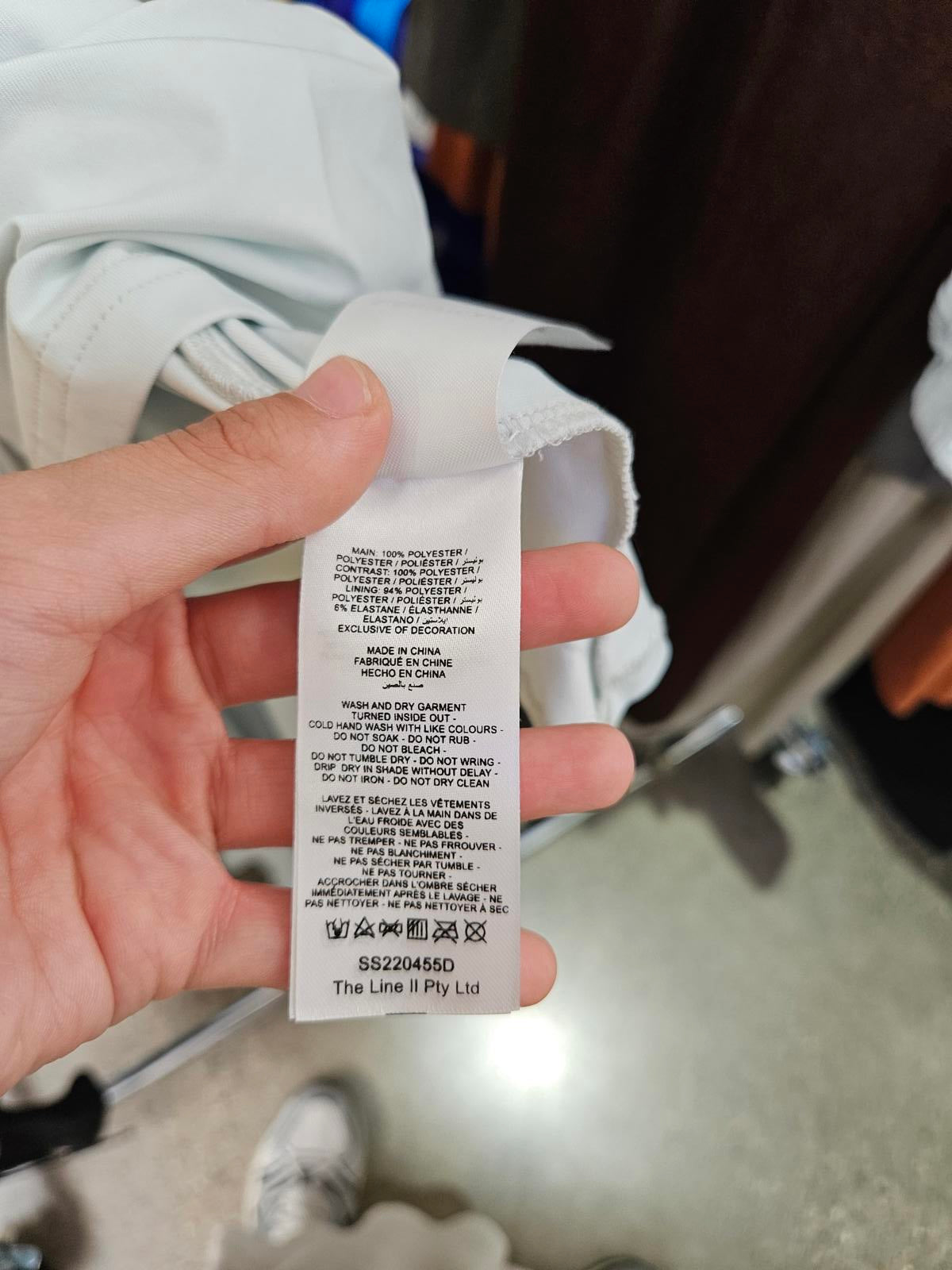 - Composition: Main 100% Polyester; Lining 94% Polyester, 6% Elastane