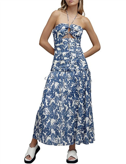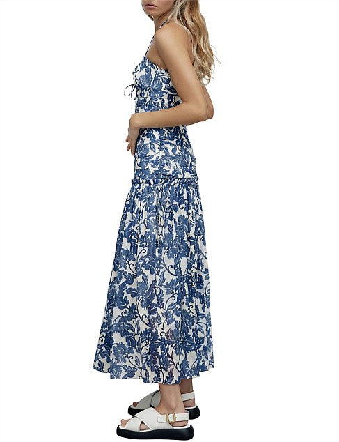 SIGNIFICANT OTHER Scarlett Midi Dress - Indigo Stencil Floral