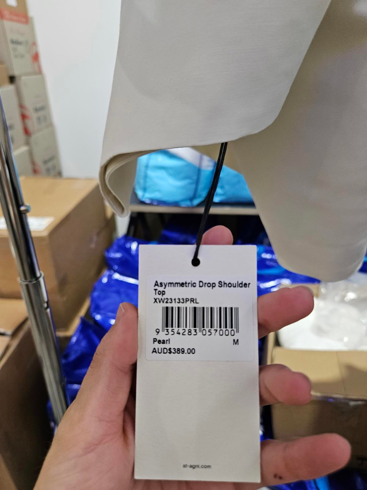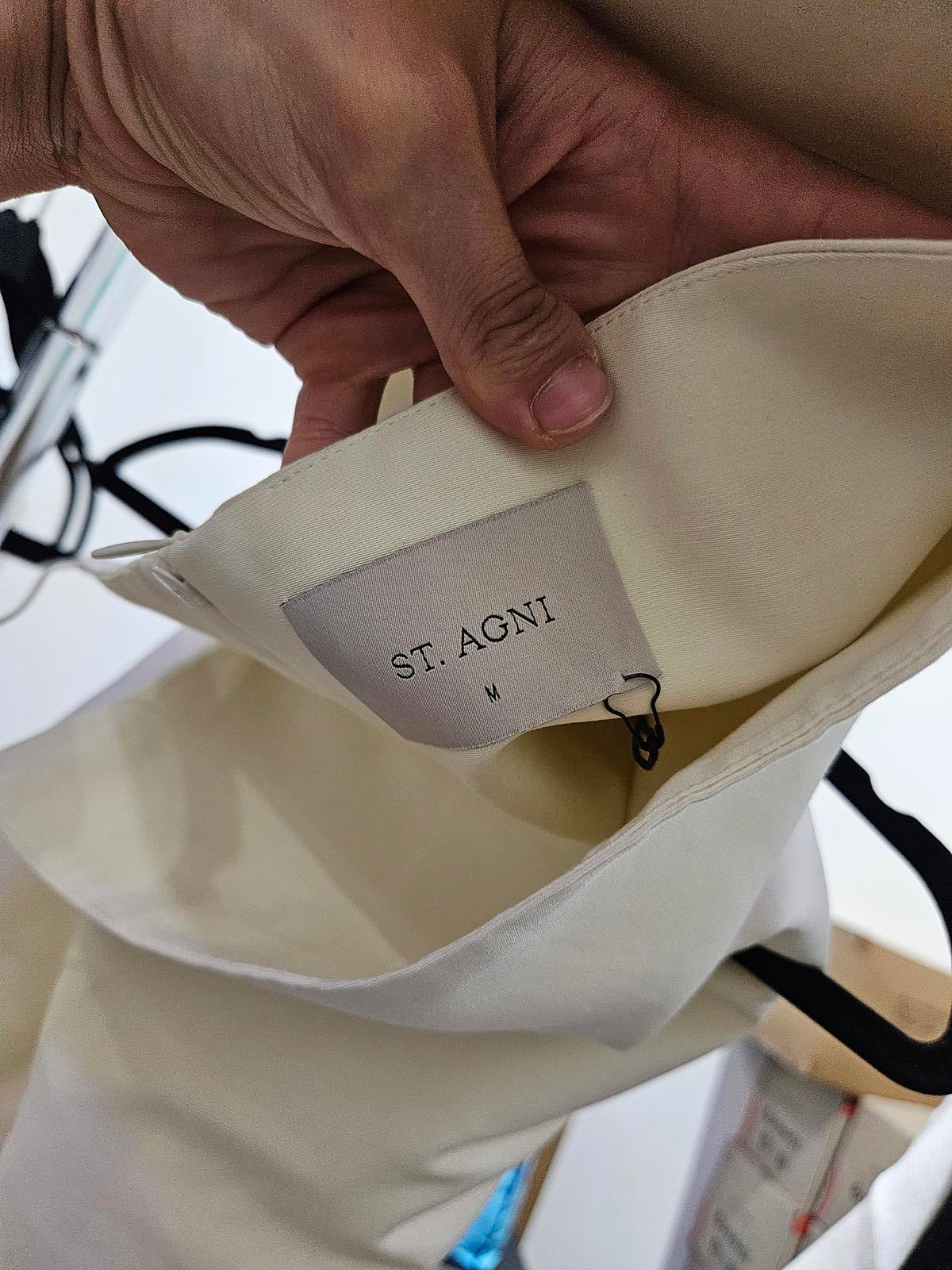 Elevate your wardrobe with the ST. AGNI Asymmetric Drop Shoulder Top in a stunning Pearl hue. This unique piece features an eye-catching drop shoulder design that adds a modern twist to classic styles. Crafted with care, the top is made from 61% Calluna and 100% Cotton Long, ensuring both comfort and breathability, perfect for all-day wear. Its asymmetrical silhouette creates a trendy and stylish look that can be dressed up or down. Pair it with your favourite jeans or a sleek skirt for an effortlessly chic ensemble. - Brand: ST. AGNI - Colour: Pearl - Material: 81% cotton, 19% silk - Size: M - Designed in Australia, made in China.